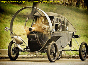 その次のシーンでは、屋外で、エドワードが、当時流行ったプロペラ推進車(Propeller-driven car)を、自分なりに作ったものが失敗だったとイライラしている場面から始まる。そこに郵便配達が自転車でやって来て、2つの郵便物を渡し、1つは 「フレイザーさん宛です」と告げる。父は、さっきまで一緒にプロペラ推進車に乗っていたフレイザーに彼宛の郵便物を渡し、自分宛のものをポケットに入れながらプロペラ推進車の前を歩く(1枚目の写真)〔白いプロペラ推進車と、右側の水苔商品の宣伝車の両方が映っている写真はこれ1枚だったので、彼の「発明」が如何に現実離れしているかを示すために使用した。